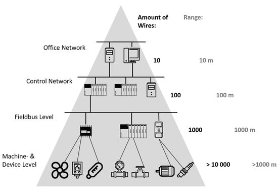 - Wollschlaeger, M.; Sauter, T.; Jasperneite, J. The future of industrial communication: Automation networks in the era of the internet of things and industry 4.0. IEEE Ind. Electron. Mag. 2017, 11, 17–27. [Google Scholar] [CrossRef]