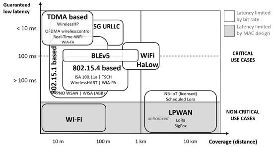 - IEC-International Electrotechnical Commission. Industrial Networks: Wireless Communication Network and Communication Profiles; IEC PAS 62601; IEC-International Electrotechnical Commission: Geneva, Switzerland, 2015. [Google Scholar]
