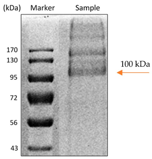 - Laemmli, U.K. Cleavage of Structural Proteins during the Assembly of the Head of Bacteriophage T4. Nature 1970, 227, 680–685. [Google Scholar] [CrossRef] [PubMed]