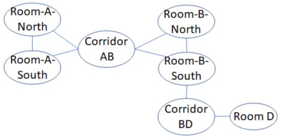 According to the contextual and geographical meaning (area names) of the floor map in Figure 1, there are seven different semantic positions. Thus, Room A-North, Room A-South, Corridor AB, Room B-North, Room B-South, Corridor BD, Room D }.