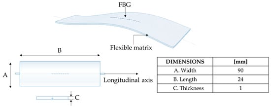Design and dimensions of the fiber Bragg grating (FBG)-based flexible sensor.