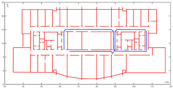 Indoor maps come in a variety of formats, such as image file formats, PDF files, or CAD files. These formats cannot be directly used for map matching algorithms, and the map needs to be digitized to create mathematical models. The map in this article is in the label image file format (TIFF). We used the mapinfo software to digitize the electronic version of the indoor map, using only the wall information of the map. The digital information format features the coordinates of the end point of each line segment.