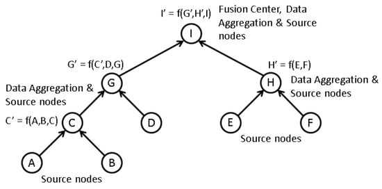 Tree-based information fusion is the most generalized hierarchical information fusion scheme. Figure 2 shows a typical binary tree-based hierarchical network.
