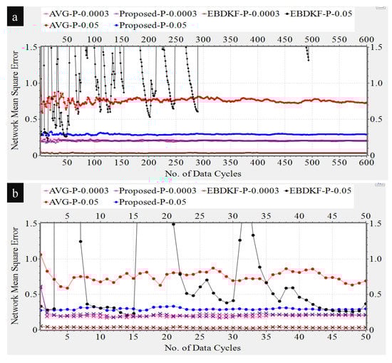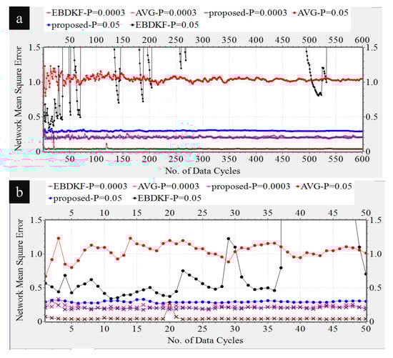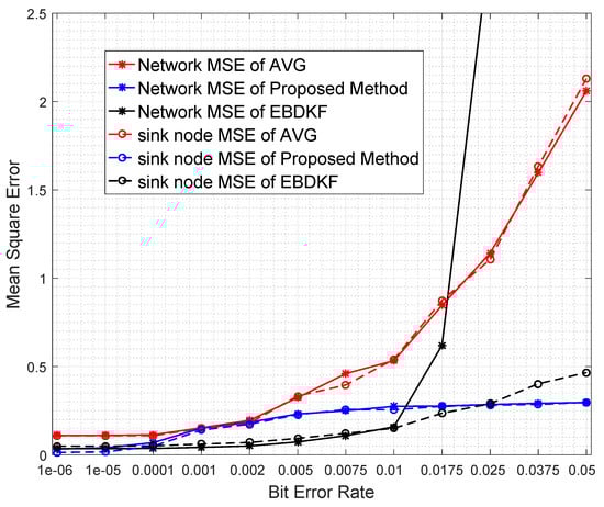 We do not use percentage absolute relative error since it is a relative parameter depending on the value of the estimate such that the error percentage of the results, which are obtained will be depending on the actual value of the measurement as evident from Equation (5). To keep our results generic, we use sink node’s MSE and network MSE instead of absolute percentage error. Therefore, we assume that the all MSE values obtained in this context corresponds to absolute percentage error less than 1% meeting reliability requirements of SG applications targeted in this context.
