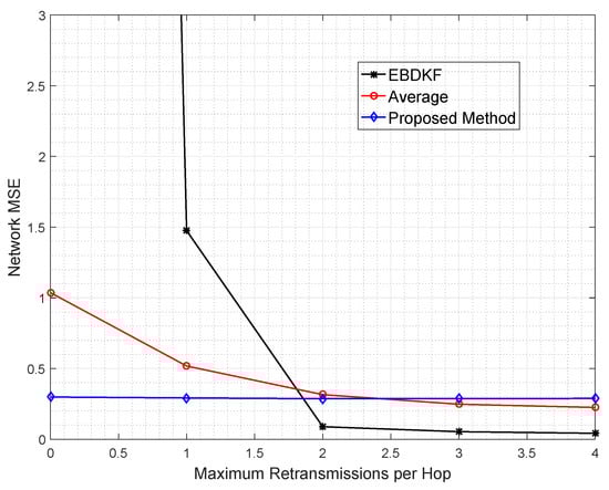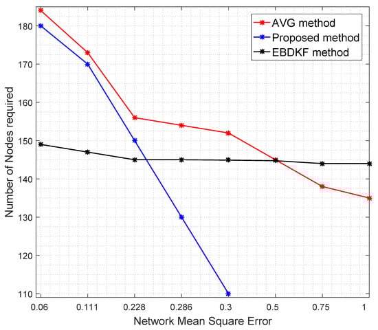 All other parameters are as specified in []. Unless otherwise specified, the is set to 8. Heterogeneous measurement noise variances are considered and they are generated for all fusion techniques as given in Equation (30) subjected to an upper bound for fair comparison of three different fusion techniques.
