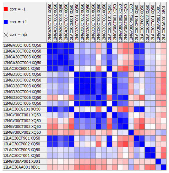 49], we could face the problem that the device operates in different states. The pump operates in different load ranges, variable atmospheric conditions, and with different types of materials used (e.g., oil, grease), so that the abnormal states reflected in small deviations from predicted values are not easily visible in the multidimensional space of PCA coefficients. Moreover, the reduction of dimensionality causes the blurring of small deviations between the correlated signals, making it impossible to detect abnormalities, which is the essence of the algorithm proposed in this article.