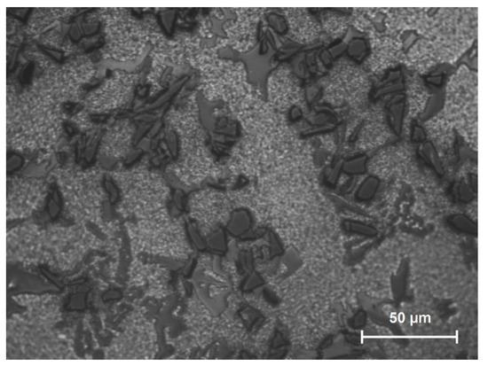The study used a hard-to-cut material, the Al/SiC matrix composite, as a workpiece. The reinforcement of aluminum cast alloy with the silicon carbide particles (approximately 10% SiC) improves mechanical properties. The metallographic microsections of the AMC composite is shown in Figure 1. Moreover, Table 1 depicts the chemical decomposition of the Al/SiC composite workpiece. A three-edge end mill with diamond coating was selected to carry out milling tests. Table 2 shows the tool characteristics.