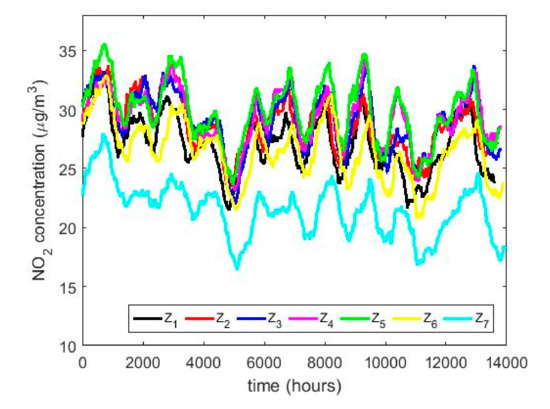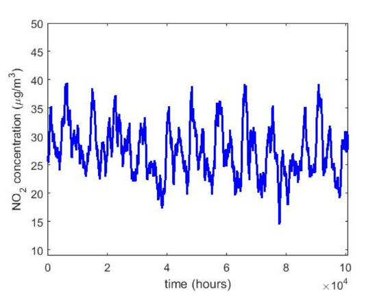 Regarding the behavior of the NO2 concentration shown in this paper, it is important to say that this behavior bears some similarity to that of other pollution variables in urban cities. For example, in [21] maximums and minimums were also observed in the CO concentration in hours of the day close to those shown in the present paper. The aforementioned is important, because the study carried out in [21] was also carried out at Belisario station during the same time interval that was taken into account in the present paper. Another example that shows the existence of maximums and minimums at different times of the day in the behavior of the concentration of pollutants in urban cities, is the one shown in [24]. Specifically, in [24] it is observed how the concentration of black carbon varies throughout the hours of the day in two air quality monitoring stations located at Mäkelänkatu and Kumpula in Helsinki.