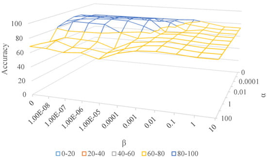 Extended from TCA, we hope to obtain discriminative representations while reducing domain discrepancy in some sense. However, if they are too large, we cannot learn transferable knowledge across domains. As Figure 5 shows, becomes larger from front to back and increases from left to right. Obviously, the highest peak occurs in the middle of the surface, which manifests that the proposed two strategies are both necessary. When becomes too large (corresponding to the right and rear of the surface), the accuracy decreases sharply since we pay too much attention to feature discriminability while ignoring the fundamental problem, i.e., distribution matching.
