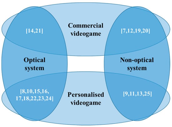 Furthermore, regarding the use of videogames in physical rehabilitation, there was a clear trend toward the development of personalized videogames (13 papers) and, on fewer occasions, commercial videogames were used (six papers).