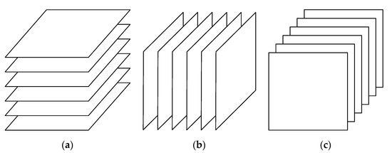 Graphic illustration of slices of a third-order tensor . (a) Horizontal slices ; (b) Lateral slices ; (c) Frontal slices .