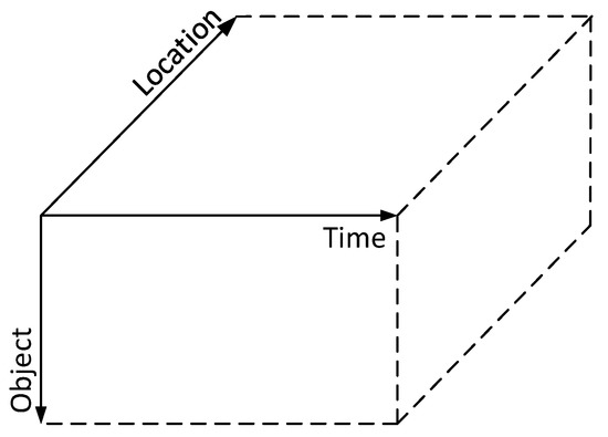 Graphic illustration of the third-order tensor with 3 modes representing object, location and time, respectively.
