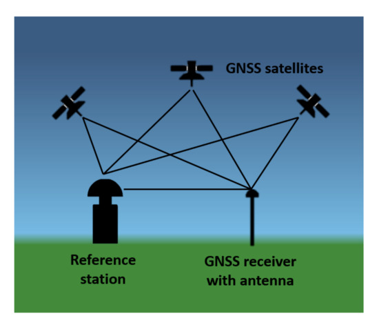 Scheme of Global Navigation Satellite Systems (GNSS) measurement using the differential method.