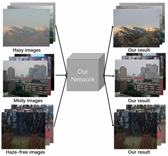 Our network can convert hazy images, misty images, and haze-free images into the results we expect.