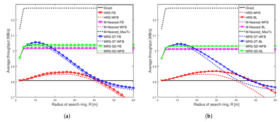 From the above analysis, we can see that our proposed scheme MRS-ST-BL selects relays with higher transmission power compared to MRS-ST-WFB. This increment in transmission power of relay contributed to improve average throughput of MRS-ST-BL in Figure 3b, Figure A1b, Figure 4b, Figure A2b, Figure 6b and Figure A4b.