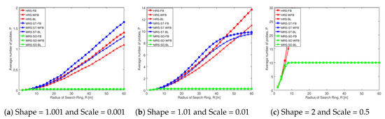 Appendix A.2. Average Number of Probes Comparison of Different Schemes in Low Node Density Network