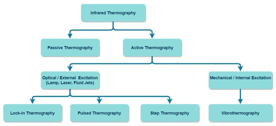 Classification of common infrared thermography techniques used in NDT.