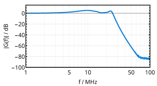 Moreover, the voltage transfer function of the matching network was derived from a two-port S-parameter measurement. The result of Figure 25 indicates a suppression of the energy carrier by 50 dB with respect to the data carrier, providing additional isolation.