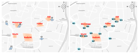 Each year the TT Festival is held in Assen, The Netherlands, in concurrence with the MotoGP at the TT circuit nearby. In 2018, the TT Festival took place from Wednesday, 27 June, 18:00 until Sunday, 1 July, 04:00. During four consecutive evenings, activities were organized at 3 to 10 music stages in the city center of the municipality Assen. The inner city of Assen predominantly consists of two-to-four-story houses with retail and restaurants on the lower floors (see Figure 1). Streets are relatively wide according to Dutch standards and lined with trees. Most music stages were located on open squares and/or wide corridors.