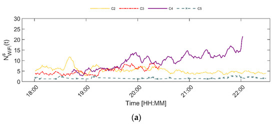 Wi-Fi and Bluetooth scanners are more and more readily adopted to analyze movement patterns in urban environments. These studies featured, amongst other things, highway traffic [32,33], public transit, pedestrian spaces in city centers [22,34], campuses [35,36], mass events [1,37,38] and buildings [39,40].