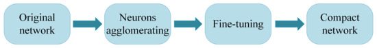 Based on the above introduction, the overall process of the proposed network compression method based on NAC can be summarized as that shown in Figure 3. First, we fully train the original network, then we apply the NAC algorithm to perform network compression to obtain the compact network. Finally, we fine-tune the compressed network and adjust the parameters of the network. After the above steps, we obtain the final compact network. Here, please note that the proposed network compression method based on NAC can be easily combined with other network compression approaches (e.g., quantization and pruning) to learn more compact networks.