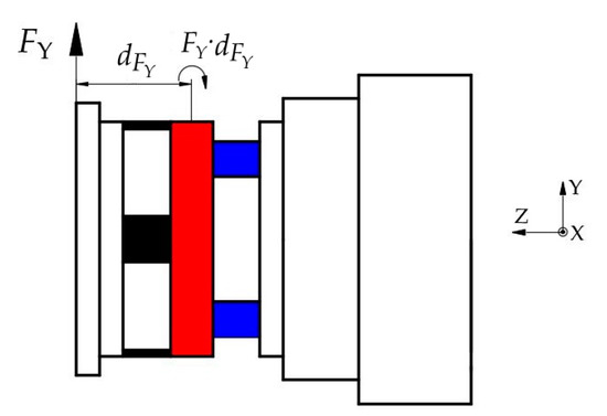 In addition, the FY applied on the ESB generates the moment around X-axis at layer B, as shown in Figure 16. Therefore, the moment measured by using the shear stress in B3, B4, B7, and B8 is the superposition of the true moment MX and the moment caused by FY. However, the true moment MX applied on the ESB is the moment value we need to measure. The force FY is measurable by using the shear stress in A1 and A3, and the moment arm of the moment caused by FY is available. Then, the moment caused by FY can be calculated out, after which the true moment MX is obtainable.
