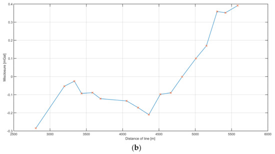 The standard procedure for verifying the consistency of gravimetric measurement data is to determine their internal accuracy [15,16]. Such accuracy is verified by performing part or all measurements on a survey line at least twice and statistically analyzing the obtained differences.