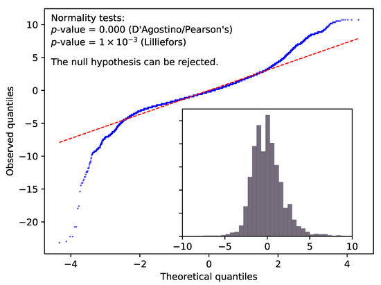 - Lilliefors, H.W. On the Kolmogorov-Smirnov Test for Normality with Mean and Variance Unknown. J. Am. Stat. Assoc. 1967, 62, 399–402. [Google Scholar] [CrossRef]