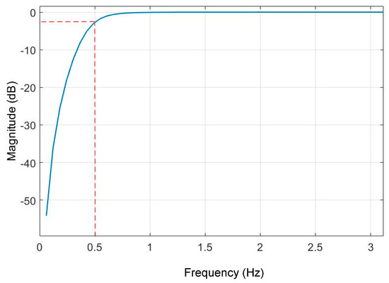 The magnitude response of 3rd-order Butterworth high-pass filter with a cut-off frequency of 0.5 Hz.