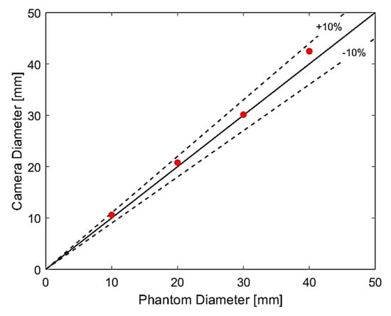 The image captured by the camera is assumed to be a perfect miniature of the reality, such that the distances observed, in meters, are proportional to the distances, in pixels, of the image (). A convenient point to set the scaling factor between the picture and the reality is the outer wall of the pipeline, where (due to the lack of refraction effects), and both positions are known (45 mm in reality and px in the images of this study, resulting in mm/px).