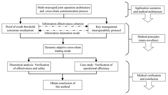 Up to now, there are many projects on the microgrid internal trading based on blockchain, but in fact, the research of multi-microgrid joint operation using blockchain can not be ignored. The main objective of this study is to design a dynamic adaptive cross-chain trading mode to realize the multi-microgrid joint operation. Figure 1 shows the idea organization and main procedures of this study.
