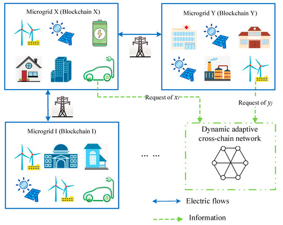Blockchain technology has advantages of decentralized, trusted, transparency, fairness and can be applied to distributed decision-making [9], which is very suitable for establishing a trusted system of multiple stakeholders [10]. The blockchain-enhanced energy trading stands out to be a suitable solution [11,12]. For multi-microgrid joint operation, cross-chain technology of blockchain could break through the trust barrier of each microgrid and realize the energy transaction among multiple systems on the basis of protecting privacy [13]. Typical cross-chain technologies for asset transfer are based on four typical types: notary scheme, sidechains/relays, hash-locking and distributed private key control [14]. These methods mainly focus on asset mapping and asset transaction to reconstruct the value exchange network of blockchains [15]. However, it is difficult for public blockchain to provide more operable interface [16] and there is a single point of failure [17], so the existing cross-chain technology could not be applied to energy systems directly, especially unable to solve the cross-chain trading problem of multi-microgrid joint operation. Additionally, the main research gap are as follows: