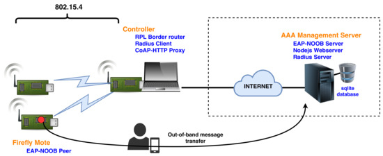- CoAP-EAP with EAP-NOOB in Contiki (Implementation). Available online: https://github.com/eduingles/coap-eap-noob (accessed on 26 October 2020).