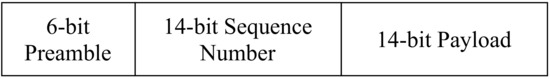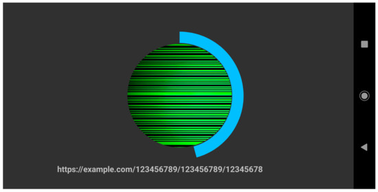 We implement and test two basic methods for transmitting and reading data using VLC. In the first method [61], as shown in Figure 4, the preamble is followed by a 48-bit payload. We also include a prefix indicator to relay information about the length of the message to the reader. While testing transmission reliability, we noticed that the smartphone camera was not able to capture data seamlessly, causing data to be lost between captured images. We managed to solve the issue by repeating each set of three characters multiple times, which gives the camera enough time to capture all of the data successfully. However, moving the smartphone during the scanning process may disrupt the signal, requiring the process to be started over. The second method [62] utilizes sequence numbers to provide error correction. In addition, since the character set of the OOB message only consists of ASCII characters, we can use seven-bit encoding. This optimization allows for more data to be encoded within each captured image. In this variation, shown in Figure 5, the preamble is followed by a seven-bit sequence number and a seven-bit payload, both of which are Manchester encoded into 14-bit values. This means that each captured image can contain 2–3 characters.