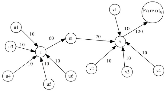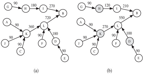 We model WSN as a directed tree , where each edge has a defined capacity denoted by or . Each node m monitors its downstream neighbor (i.e., m’s parent denoted by ) and all of its upstream neighbors (i.e., m’s children denoted by ). Based on the known multi-flow problem [42], we define a flow as a function , which counts the number of packets sent from node u to node v during a monitoring period of length and satisfies the following constraints: