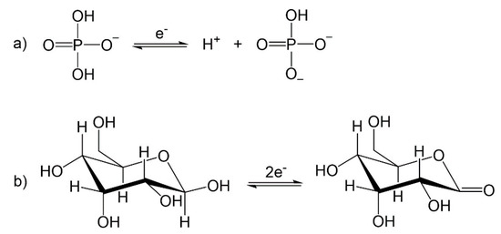 Taking into consideration all the electrochemical analysis, it can be deduced that the whole process of glucose electro-oxidation involves the slow transfer of two electrons ( = 2) in an irreversible diffusion control process. This system was determined as irreversible so the transfer coefficient can be calculated using the equation proposed by Bard-Faulkner [58,59] (Equation (2)) resulting in α = 0.22: