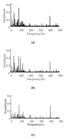 The frequency of the cutting vibration varies with the change of tool wear loss, which will be reflected in the frequency–domain of the current signal. Figure 4 shows that the frequency–amplitude characteristics in different tool wear conditions are also different.