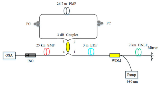 - Pinto, A.M.; Frazao, O. Multiwavelength Raman fiber lasers using Hi-Bi photonic crystal fiber loop mirrors combined with random cavities. J. Lightwave Technol. 2011, 29, 1482–1488. [Google Scholar] [CrossRef]