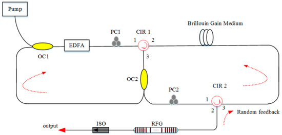 - Zhang, L.; Wang, C. High-efficiency Brillouin random fiber laser using all-polarization maintaining ring cavity. Opt. Express 2017, 25, 11306–11314. [Google Scholar] [CrossRef] [PubMed]