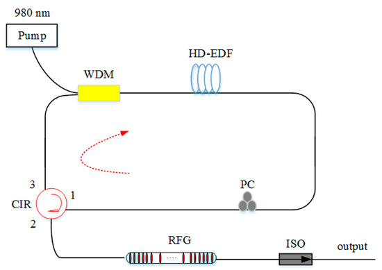 - Liu, Y.; Yu, J.L. Single longitudinal mode Brillouin fiber laser with cascaded ring Fabry–Perot resonator. IEEE Photonics Technol. Lett. 2014, 26, 169–172. [Google Scholar] [CrossRef]