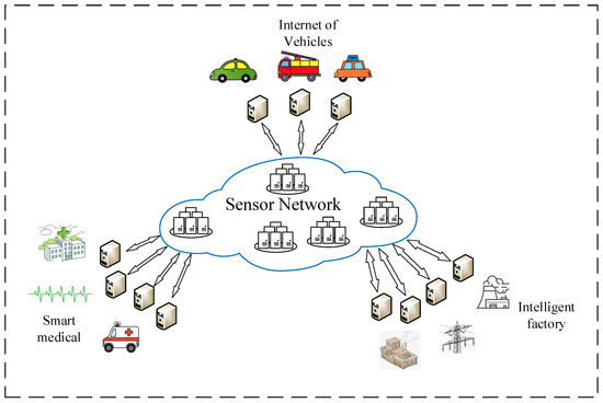 In reality, interdependent sensor networks have been widely used in our society. All of the Internet of Vehicles, the Intelligent factory, and Smart medical are regarded as sensor networks. They depend on the controlling of a sensor network of the cloud calculating or data transportation. As shown in Figure 1, these application scenarios show the extensiveness of interdependent sensor networks based on heterogeneous CPS architecture, which always consists of all kinds of networks, usually represented by coupled cyber networks and physical networks. In this section, we review different correspondence relationships and processes of cascading failure in interdependent sensor networks. To briefly describe the cascading failure in sensor networks composed of a heterogeneous CPS model, we construct a simple model to perform the cascading failure’s processes in detail.