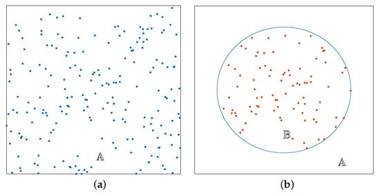 (a) User equipment (UE) distribution in and (b) UE distribution in (disaster region).