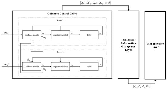 - Guidance Control Layer: This initial layer is in charge of the low-level control of the robots, implementing a Trajectory Driven Guidance with Impedance Control.