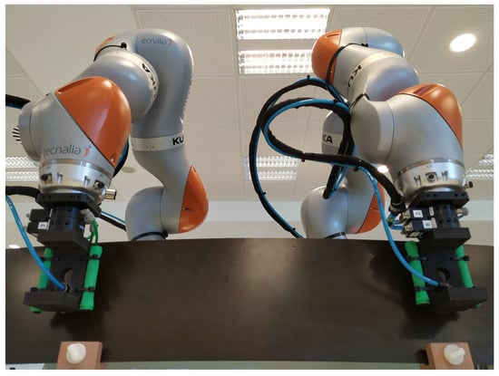 The emergence of collaborative robotics changed the development of robotic solutions drastically for cooperative tasks. Industrial environments offer an interesting scenario for collaborative robotics, an environment where robots could act as assistants to operators [,], helping them in their usual tasks. Even so, the successful development of cooperative operations between the operators and robots gives rise to many challenges. Beginning from the low-level robot control [] and ending with the social and acceptance aspects of these kinds of applications [], many facets must be tackled during the implementation phase.