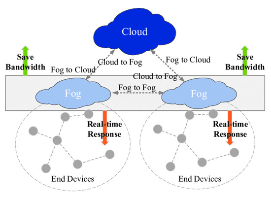 Fog computing is emerging as an alternative to the traditional Cloud-based solution by pushing processing and analytics near to where the data are generated [2]. It adds another middle fog layer between IoT devices and Cloud containing fog nodes that are placed close to edge devices (see Figure 1). The fog enables computation to be closer to the things that produce and act on IoT data. Fog nodes are usually considered to carry out a substantial amount of computation, storage, and communication in proximity to IoT edge devices in order to reduce the latency. It avoids the possible long-distance communication between edge devices to Cloud and mitigates heavy computation and analytics on Cloud. Although this architecture is promising in reducing latency by offloading data or computation tasks from edge devices into fog nodes [3,4], a careful design is demanded for efficient implementation of analytics. Distributed algorithms can play an important role in this context in which the computational capacities of all the participants in the system are leveraged to enable more robust and optimized solutions for data analytics. The key challenge lies on balancing the computation and communication for the all the IoT devices and fog nodes in the IoT system.