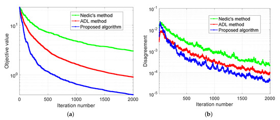 - Jakovetić, D.; Xavier, J.; Moura, J.M. Fast Distributed Gradient Methods. arXiv 2014, arXiv:1112.2972v4. [Google Scholar] [CrossRef]