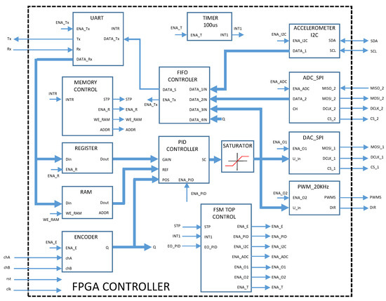 - Shao, X.; Sun, D. Development of an FPGA-based motion control ASIC for robotic manipulators. In Proceedings of the 2006 6th World Congress on Intelligent Control and Automation, Dalian, China, 21–23 June 2006; Volume 2, pp. 8221–8225. [Google Scholar]