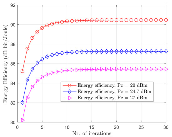 5.2. Energy Efficiency Versus Maximum Transmit Power