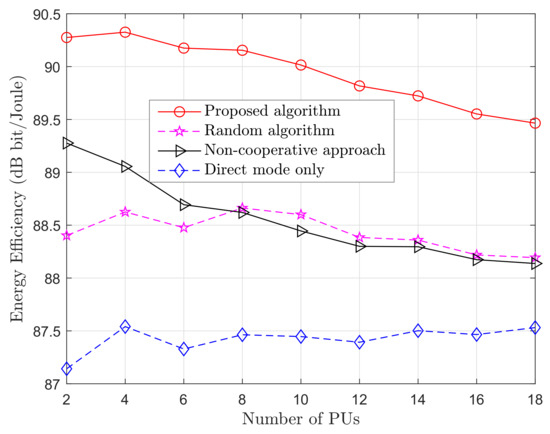 - A non-cooperative approach in which a similar system model is considered but PUs choose relays to increase their own energy efficiency, instead of maximizing the total energy efficiency of the system.