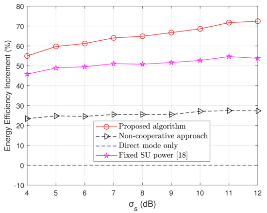5.5. Energy Efficiency Versus Shadowing Standard Deviation
